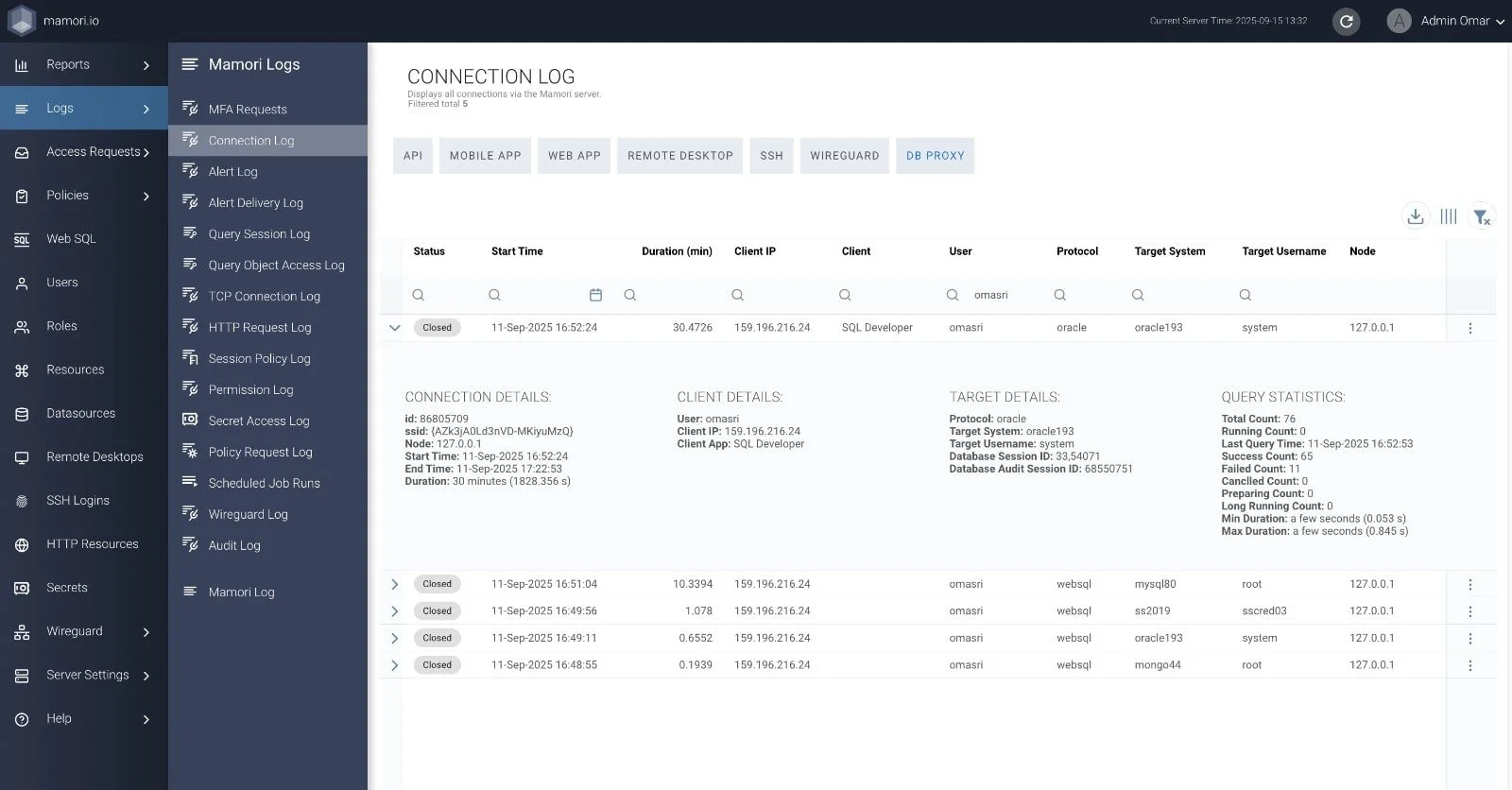 All-in-One Solution – While most database tools focus on one feature, Mamori’s solution delivers full access control, active blocking, and live response—all in one free module. Mamori’s solution also delivers Zero Trust Network Access (ZTNA), Privileged Access Management (PAM), database PAM (DB PAM), data privacy solution, workflow automation solutions, and Intrusion Detection.